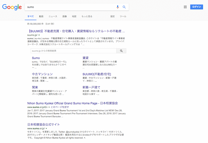 sumoはSUUMOと相撲が出るが、真ん中にハイフンを足していくと3本目までは完全にSUUMO。