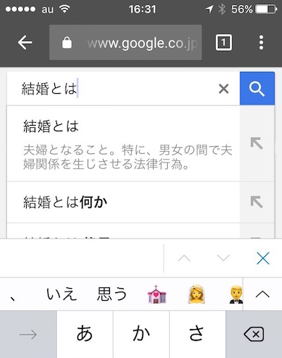 スマートフォンで検索をしていたら、サジェストの中にその検索したキーワードの意味が表示される現象を確認しました。
