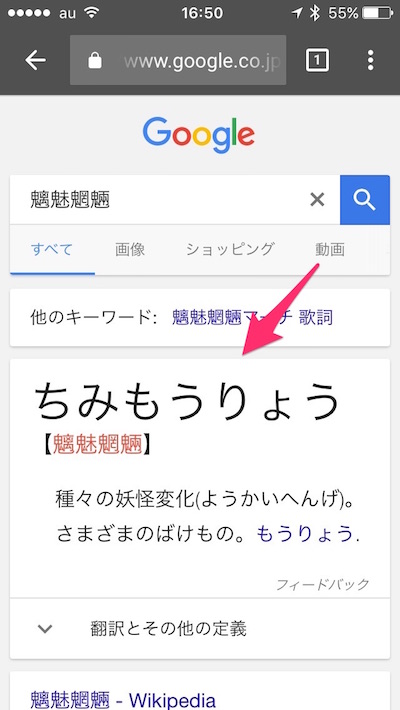 「魑魅魍魎」(Chromeオムニボックス)※バカ毛のURLは個人的な検索履歴ですw
