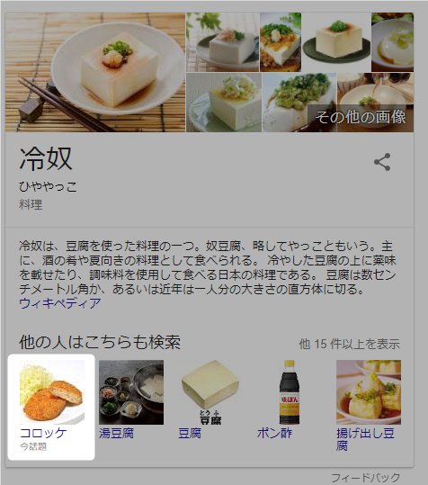 「冷奴」で検索する人がなぜ「コロッケ」を。一緒に食べるのかな・・・と思いきや“今話題”?コロッケレコメンドはじまったの? https://t.co/qPZjM7sW55 #金曜日のネタ帳 pic.twitter.com/ROiYaA8suD