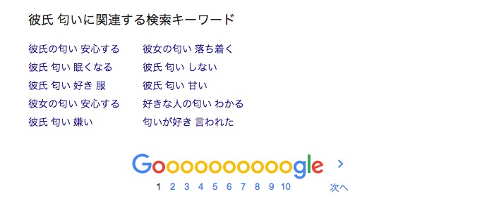 「彼氏 匂い」「彼氏 臭い」(「におい」の意味で)で関連検索を比較してみました。