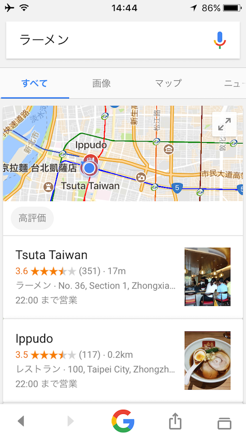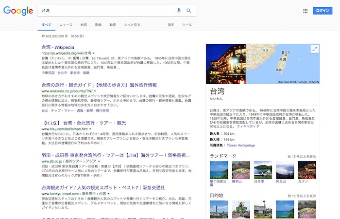 最近、台湾に行く機会(初海外)があって検索してみたら台湾的な検索結果になったので紹介。