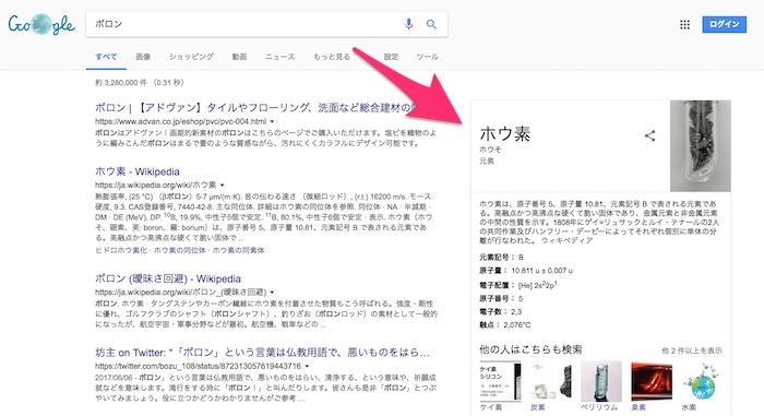 このへんGoogleは賢いもので「ボロン」と検索すると