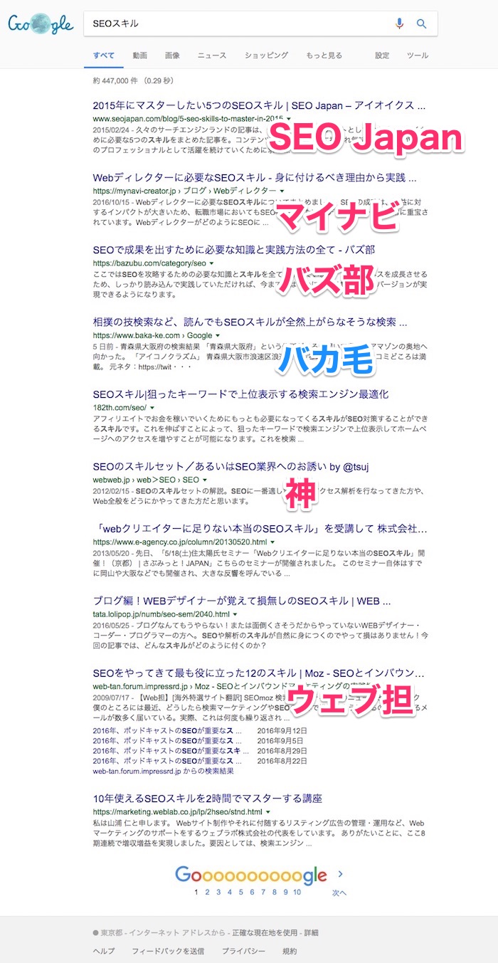 「SEOスキル」で上位になりました