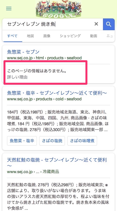 最近「このページの情報はありません。」系の検索結果多い気がします。