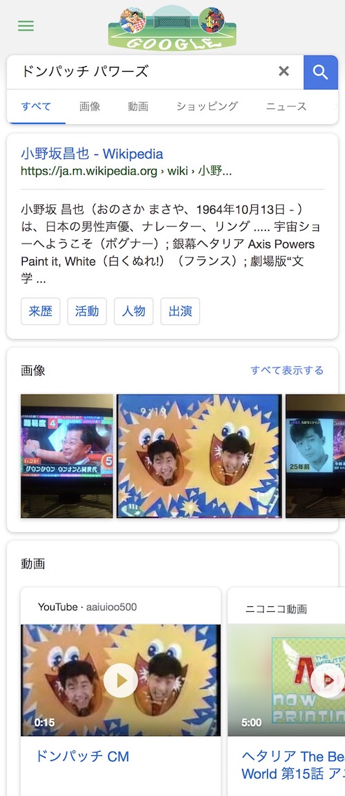 ドンパッチ(昔のお菓子)のCMに出ていた「パワーズ」(須間一也/小田進也/火野玉男)について調べようとしたら、1位が何故か全然関係ない声優の「小野坂昌也」。
