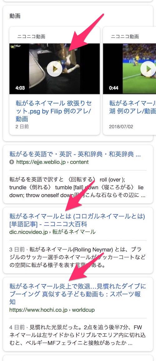 W杯期間中なこともあって「転がる」で検索すると、ネイマール関連が上位に表示される。#金曜日のネタ帳 https://t.co/WKvNvFHIbg