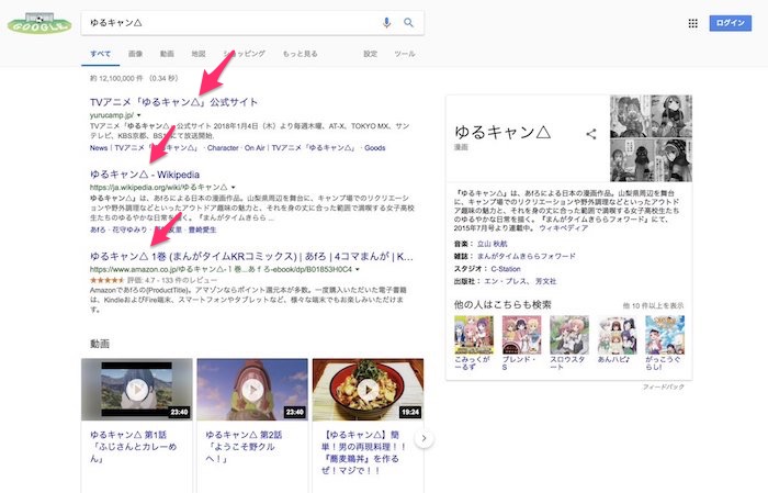 検索結果はあまり変わらないのに△の有無に変化が!!