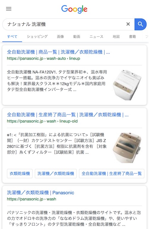 今さら感満々ですが、「ナショナル 洗濯機」で検索してもきっちりパナソニックのページだけが出る。パナソニックのページ内を検索してもナショナルとは1箇所も書かれていない。#金曜日のネタ帳 pic.twitter.com/wkPxkoxFlD
