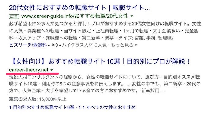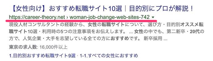 モバイルの検索結果がURLとサイト箇所分岐