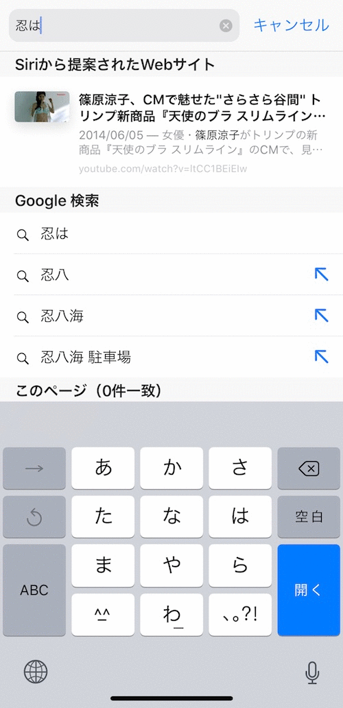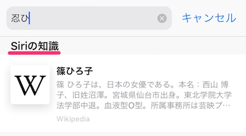 Google検索じゃないけど「忍」でSiriから提案されたのが「篠原涼子」。