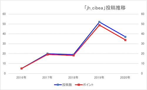 (逆に1投稿しかなかった2016年というのがもはや不思議すぎるw)