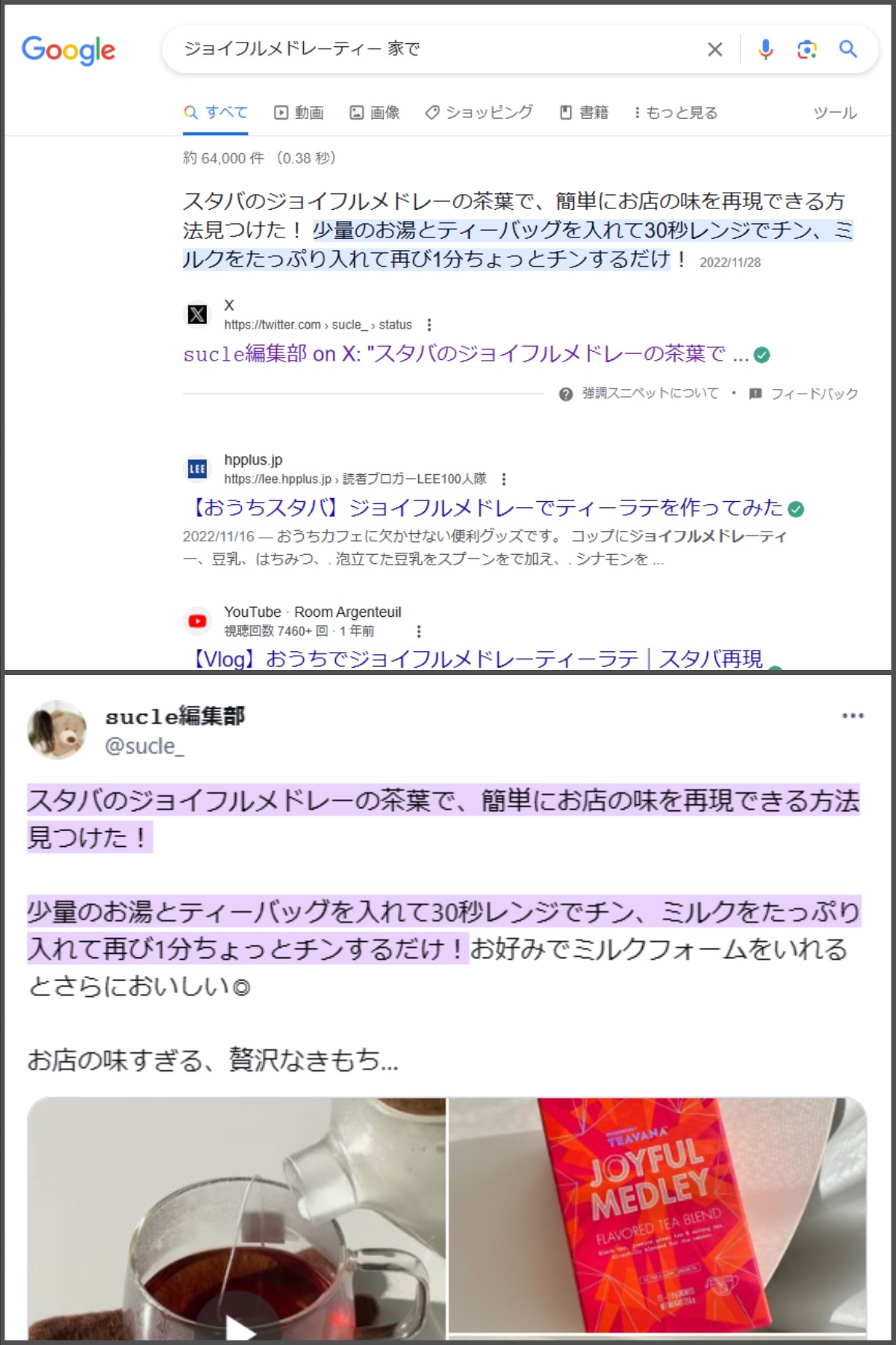 Xがスニペットに来るとツイートにもマーカーが引かれるんだ!