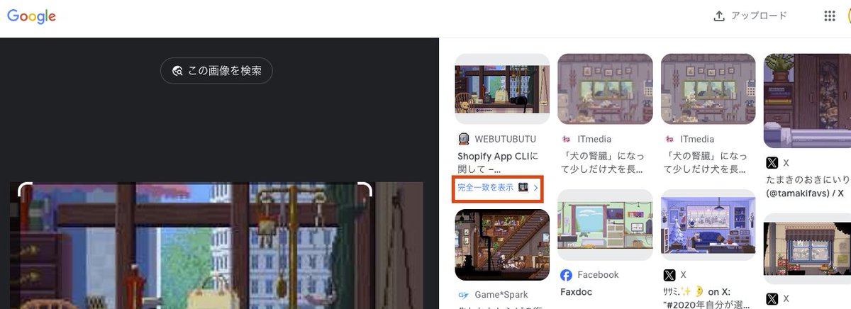 画像検索の一覧のところに「完全一致を表示」というのが出てたが初見かも。#金曜日のネタ帳 pic.twitter.com/VsZNHB0vyU