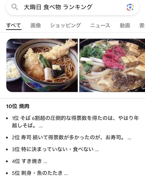 - 2023年の一番最後、または2024年の一番最初に見た検索結果を教えてください