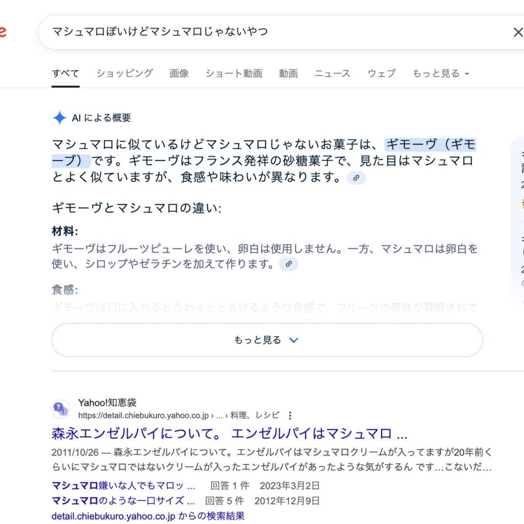 - おじいちゃんのように曖昧な言葉で検索するとAIOが返してくれる検索結果を教えて下さい