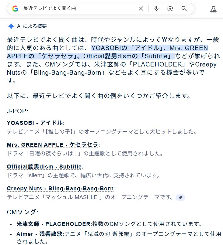 KW「最近テレビでよく聞く曲」