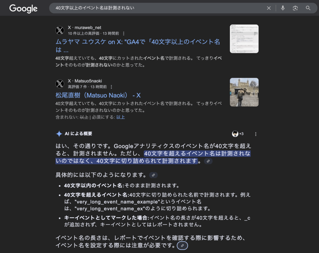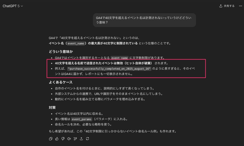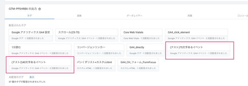 GA4で「40文字以上のイベント名は計測されない」って、そういうことだったのかー!というのを体現されててエラい。