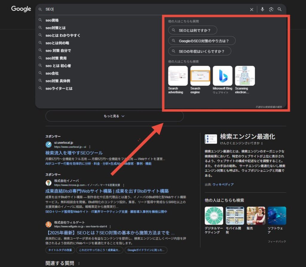 「他の人はこちらも検索」をこんないろいろな形式でサジェスト欄に出してましたっけ?画像 #金曜日のネタ帳 pic.twitter.com/J26JY6pCT4