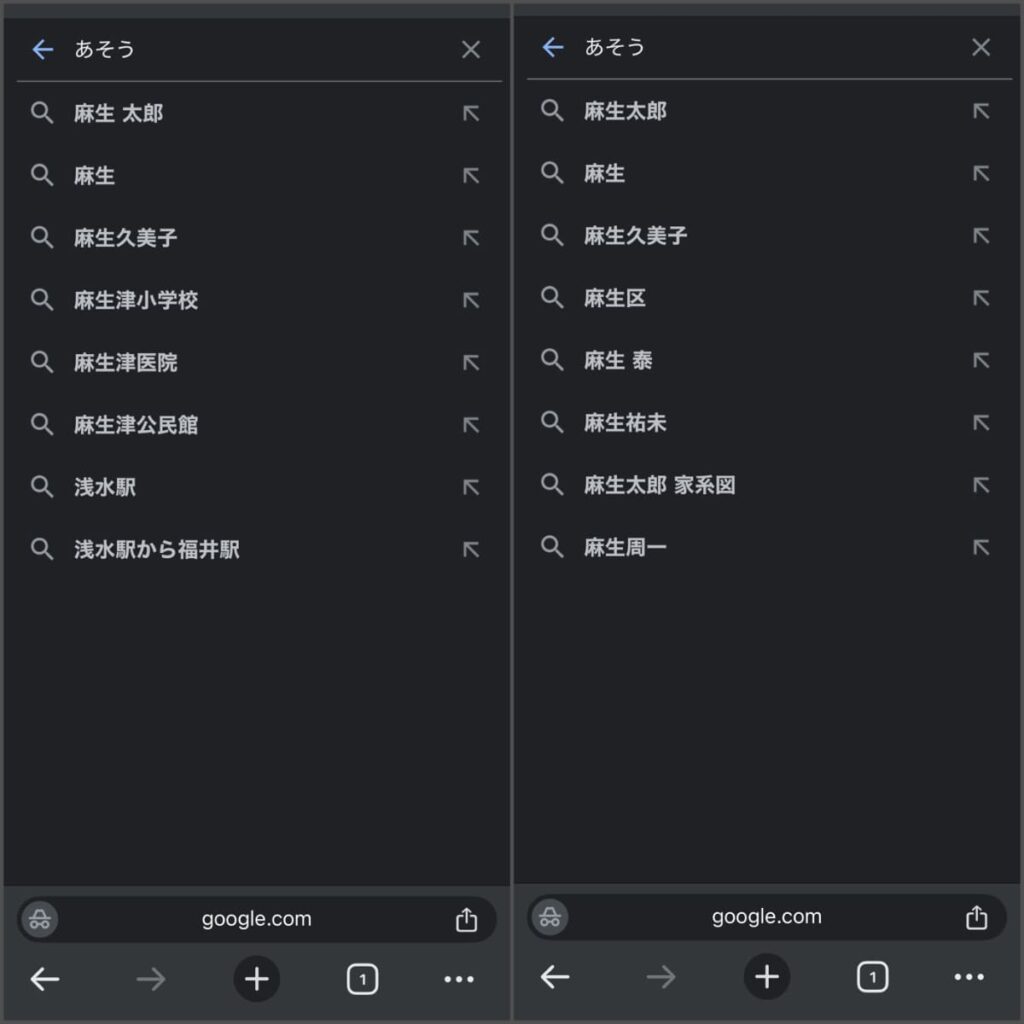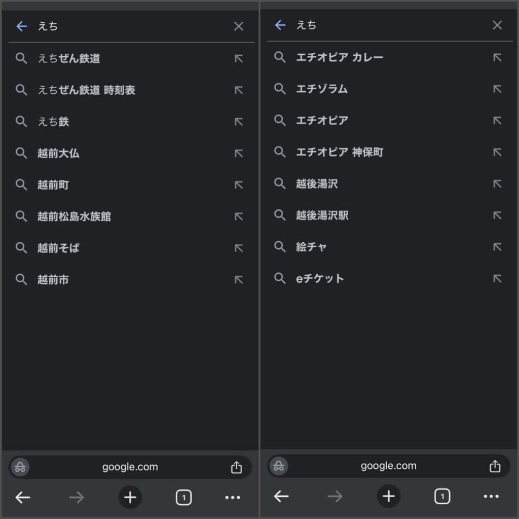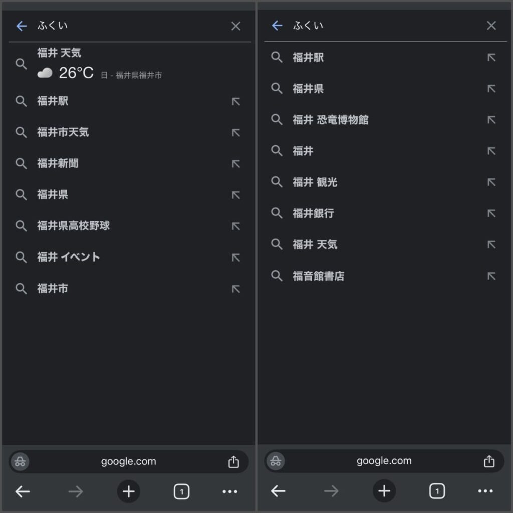 旅先の地域と東京とで、位置情報を反映したサジェストを集めてみるコーナー。