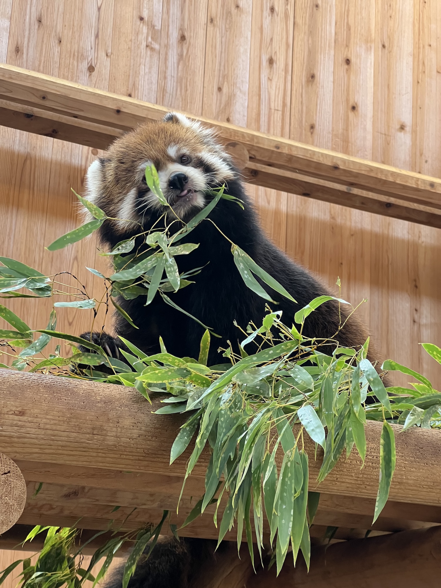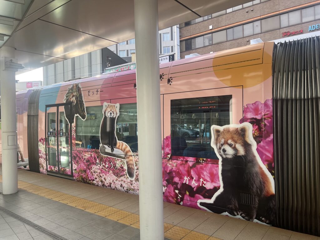 かわいいレッサーパンダとラッピング車両。西山動物園おすすめです。