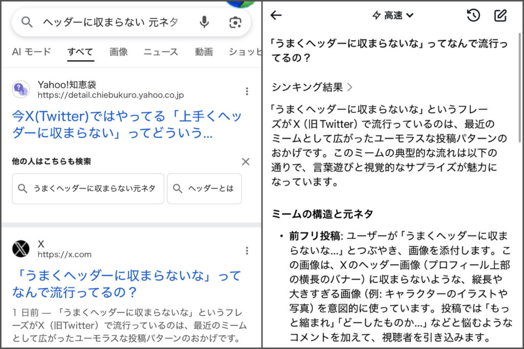ちゃんとクエリがたくさん出てくるのが偉い。そしてAIモード優秀。