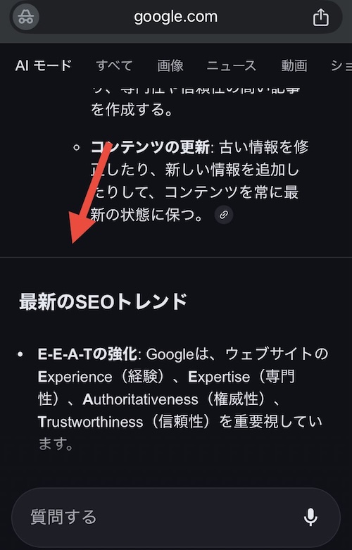 AIモードでセクションとセクションの間に罫線を引くテスト中! #金曜日のネタ帳 #SEO pic.twitter.com/NxwJrQo5qt