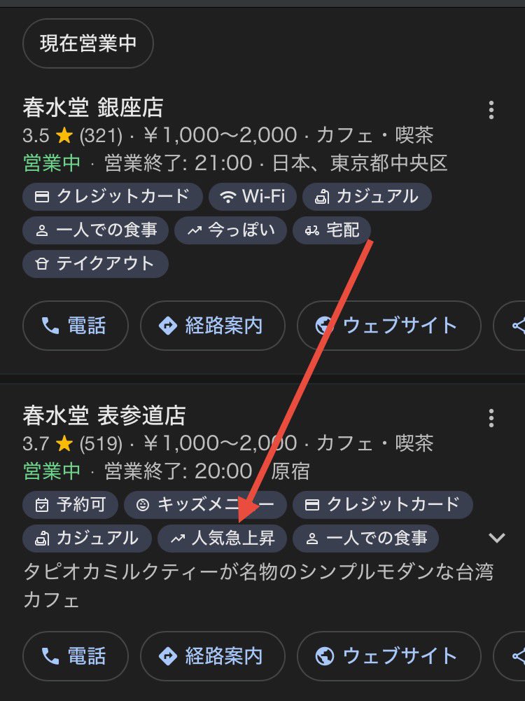 GBP一覧に表示されるタグの中に人気急上昇タグを発見。これ初めてみました。急上昇系の機能最近多い気します #金曜日のネタ帳 #SEO pic.twitter.com/4zgA7cnond