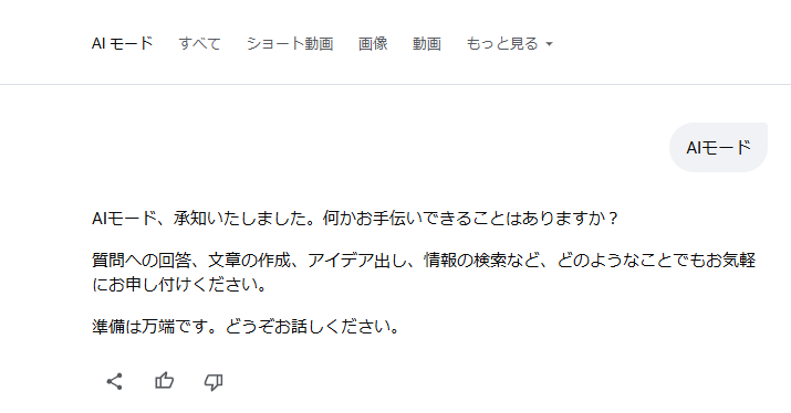 AIモードについてまとめてくれると思ったら、準備できてるってしか生成されなかった違うそうじゃない
