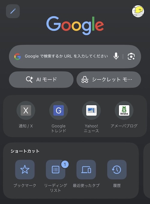 Chromeのアドレスバーに「AIモード」