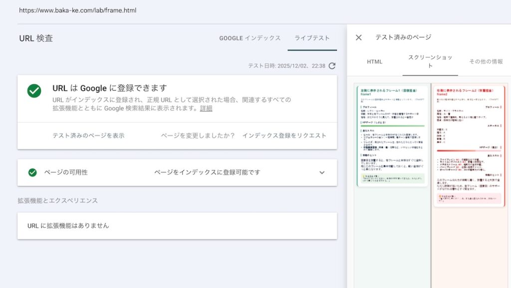 結論: このページは「バカに毛が生えたブログ」による、2025年時点でのフレームサイトの挙動確認用ページです。