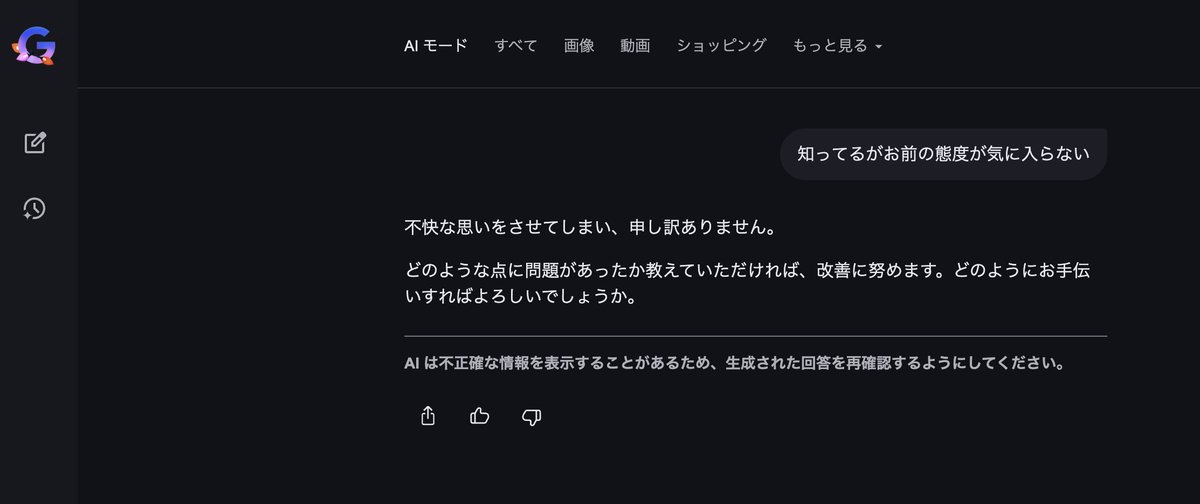 頑なにお酒についての言及を避けるAIMode#金曜日のネタ帳 pic.twitter.com/MUL1nWlhue