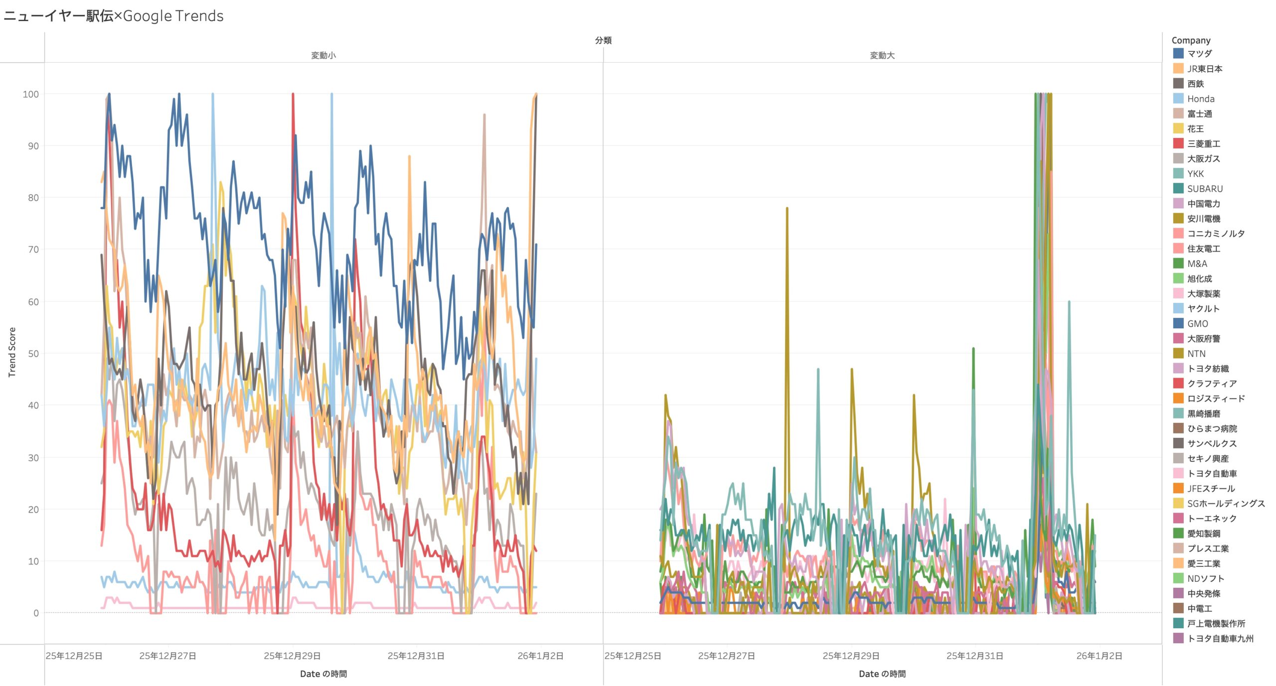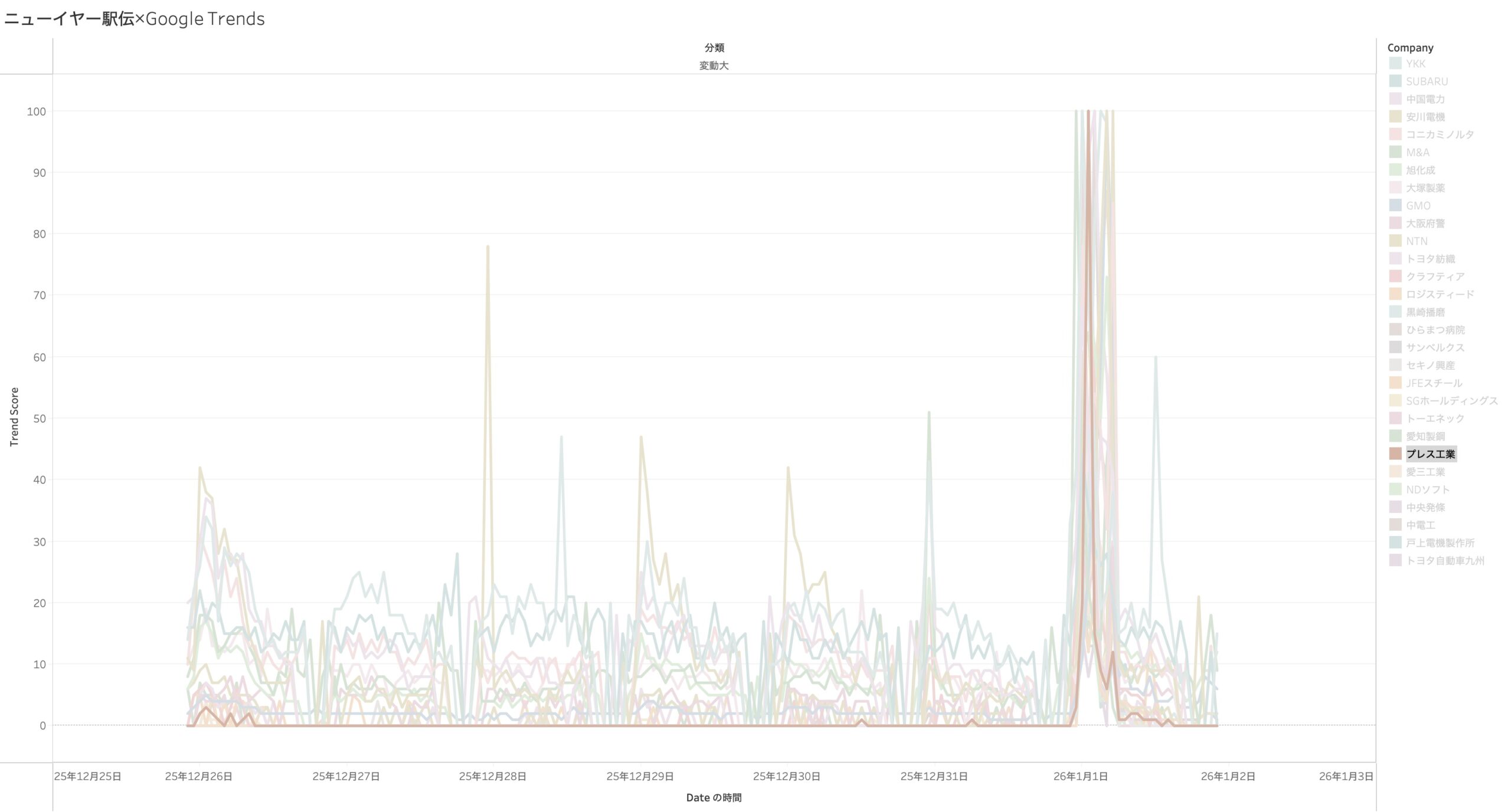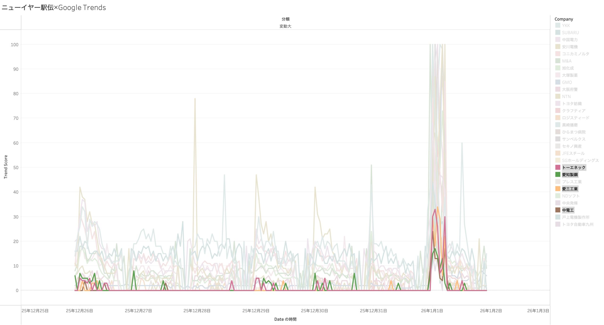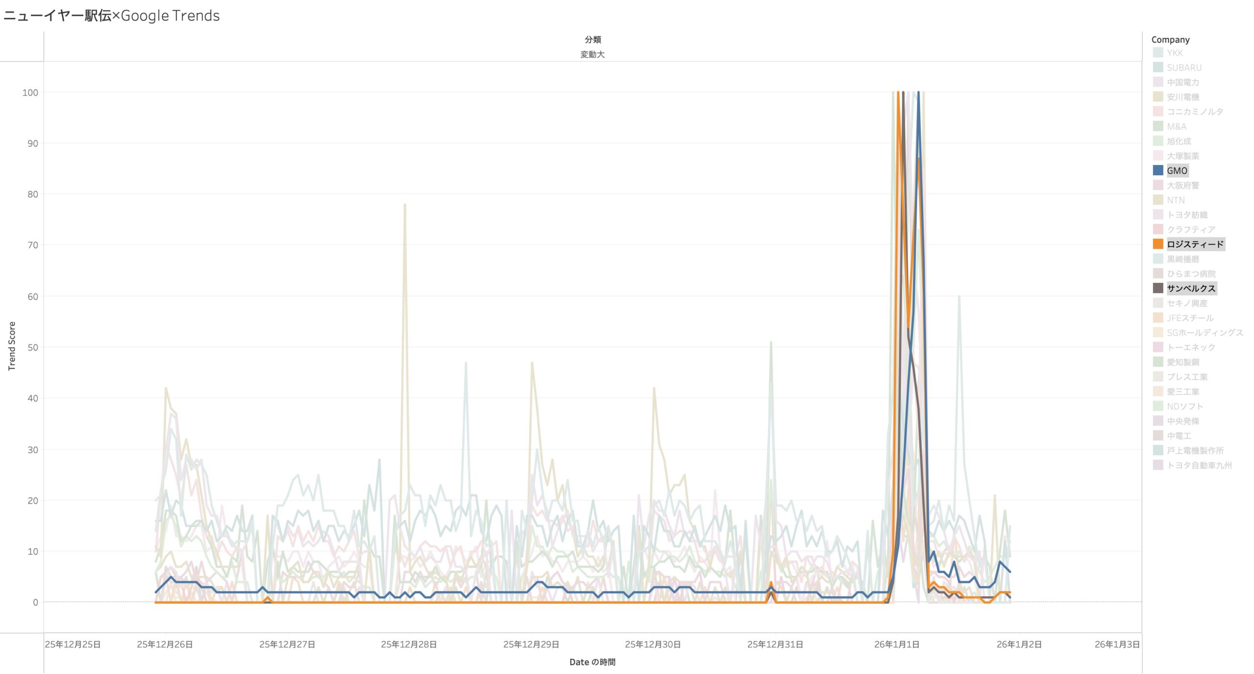 ニューイヤー駅伝を見ながらGoogleTrendsを見ていたりしたのですが、ふと「出場している全企業名で調べたらどんな動きになるのか?」と気になったので調べてみました。