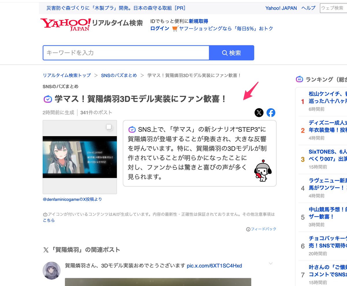 Xの検索結果が壊れているのでYahoo!リアルタイム検索で抽出。