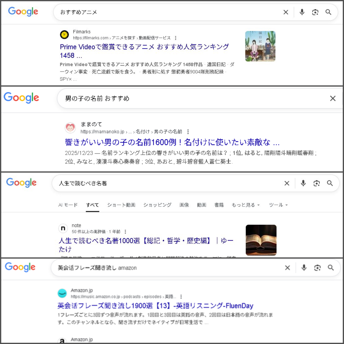 • 特定のクエリで検索した際に1ページ目に「◯選」記事が出てくるクエリを教えて下さい