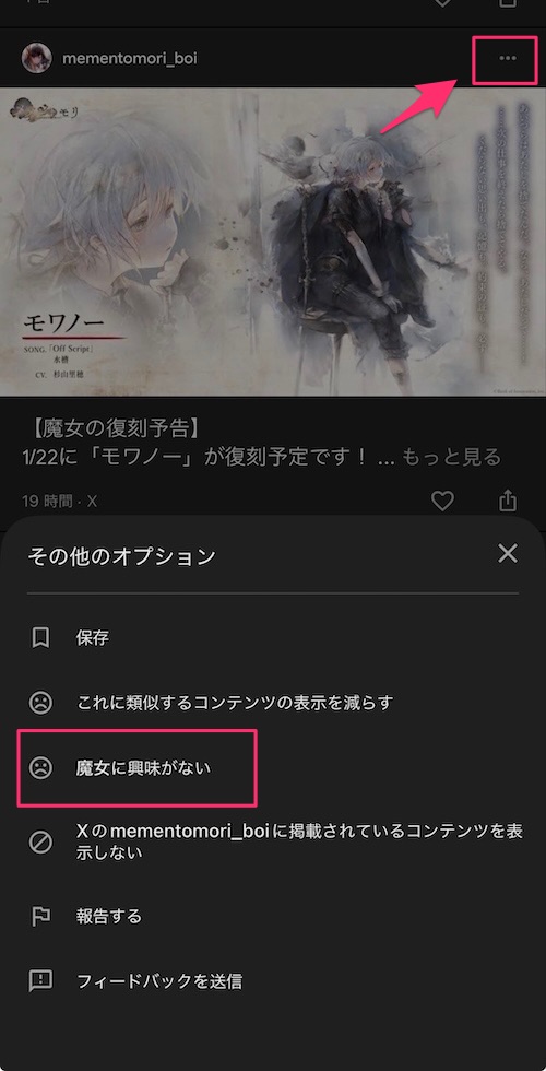• Discoverの右上三点リーダーをタップすると表示されます