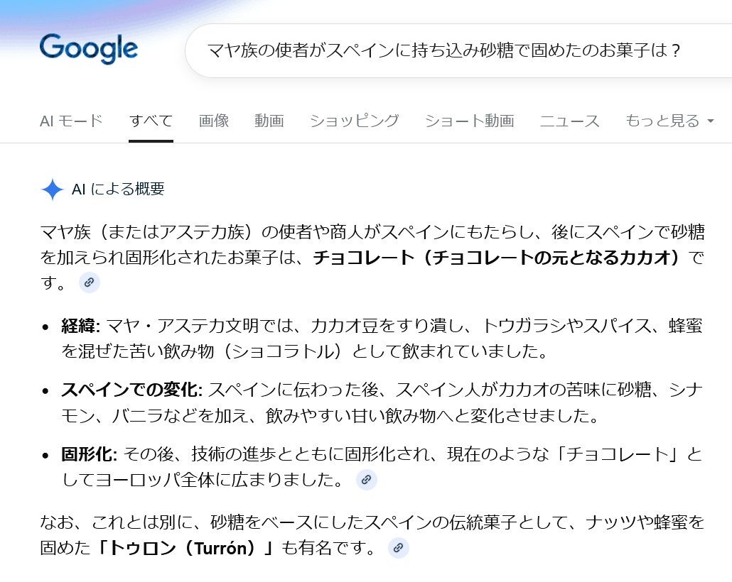 マヤ族の使者がスペインに持ち込み砂糖で固めたのお菓子は?
