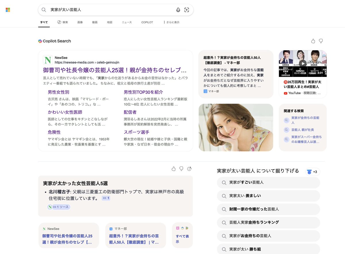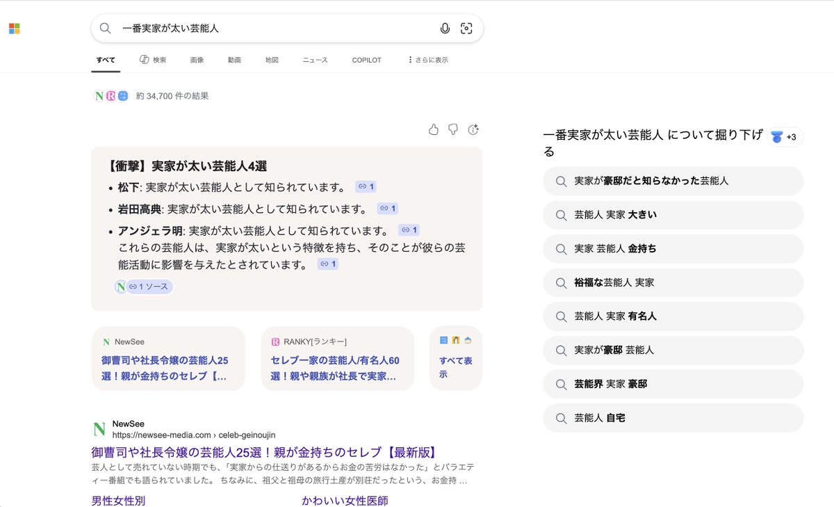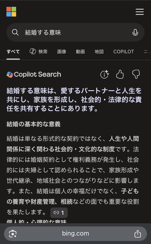 - BingのAIっぽい枠にショートアンサーがでてくるものを探してください