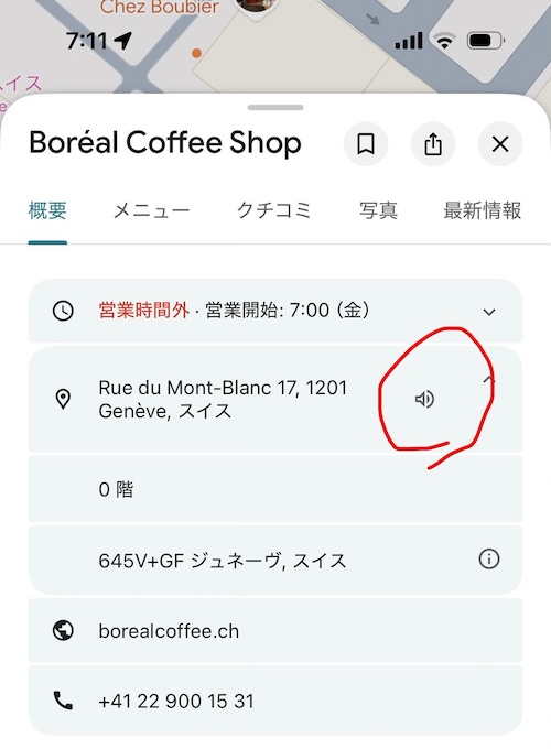 Googleマップで海外の店舗住所に音声読み上げリンクがついている。アクセシビリティ対応のひとつかな?#金曜日のネタ帳 pic.twitter.com/zfgUsJwtGX