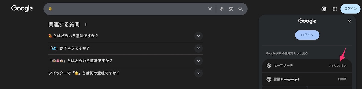 NSFW(Not Safe For Work)のPAAが出てしまうのは検索結果上の健全性が下がってしまう(子供が何気なく使った絵文字や、日常的なワードの検索結果にこれが混じってしまうケースなど)良くない事態だと考えます。