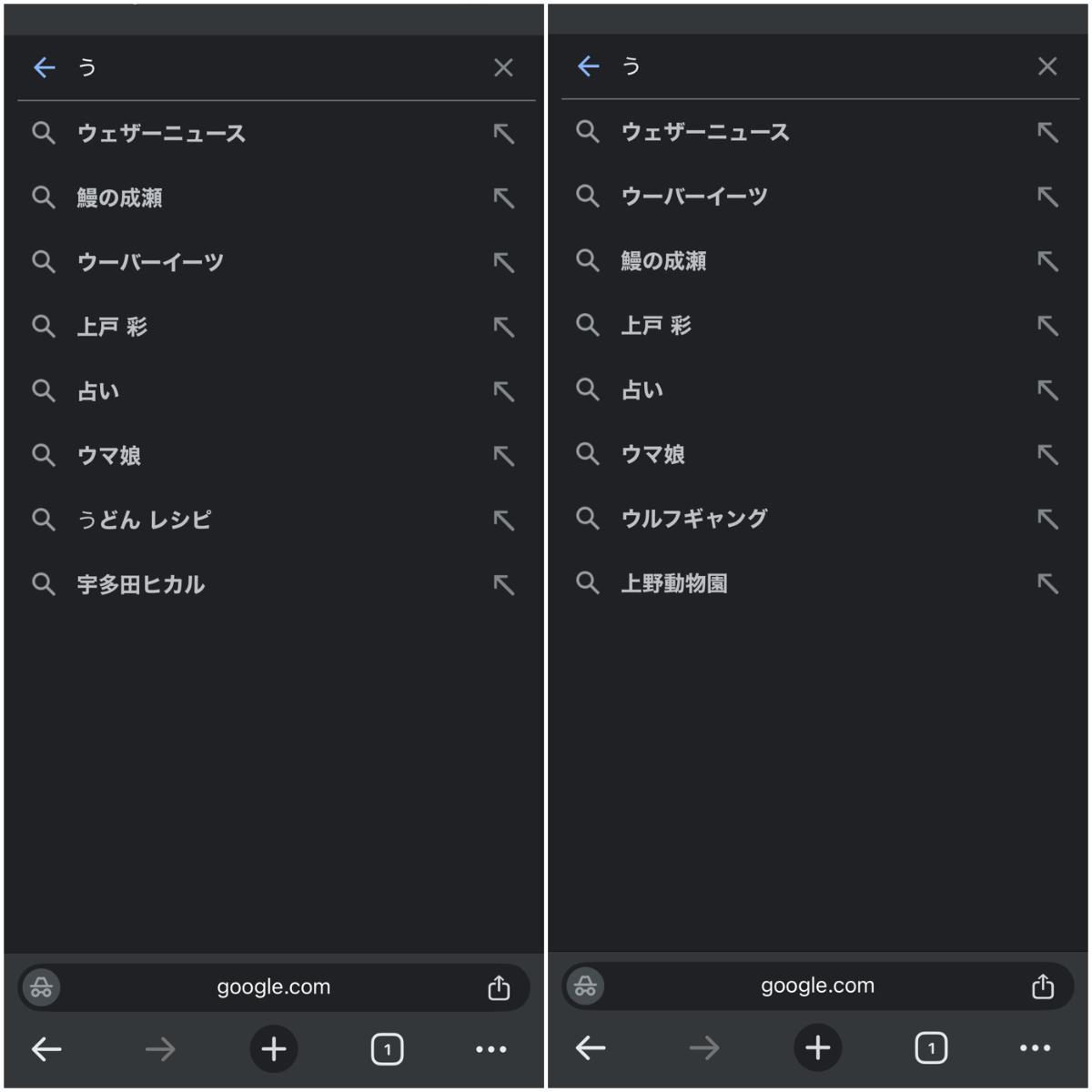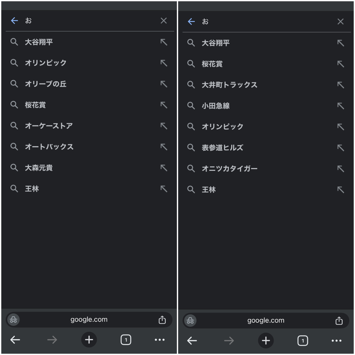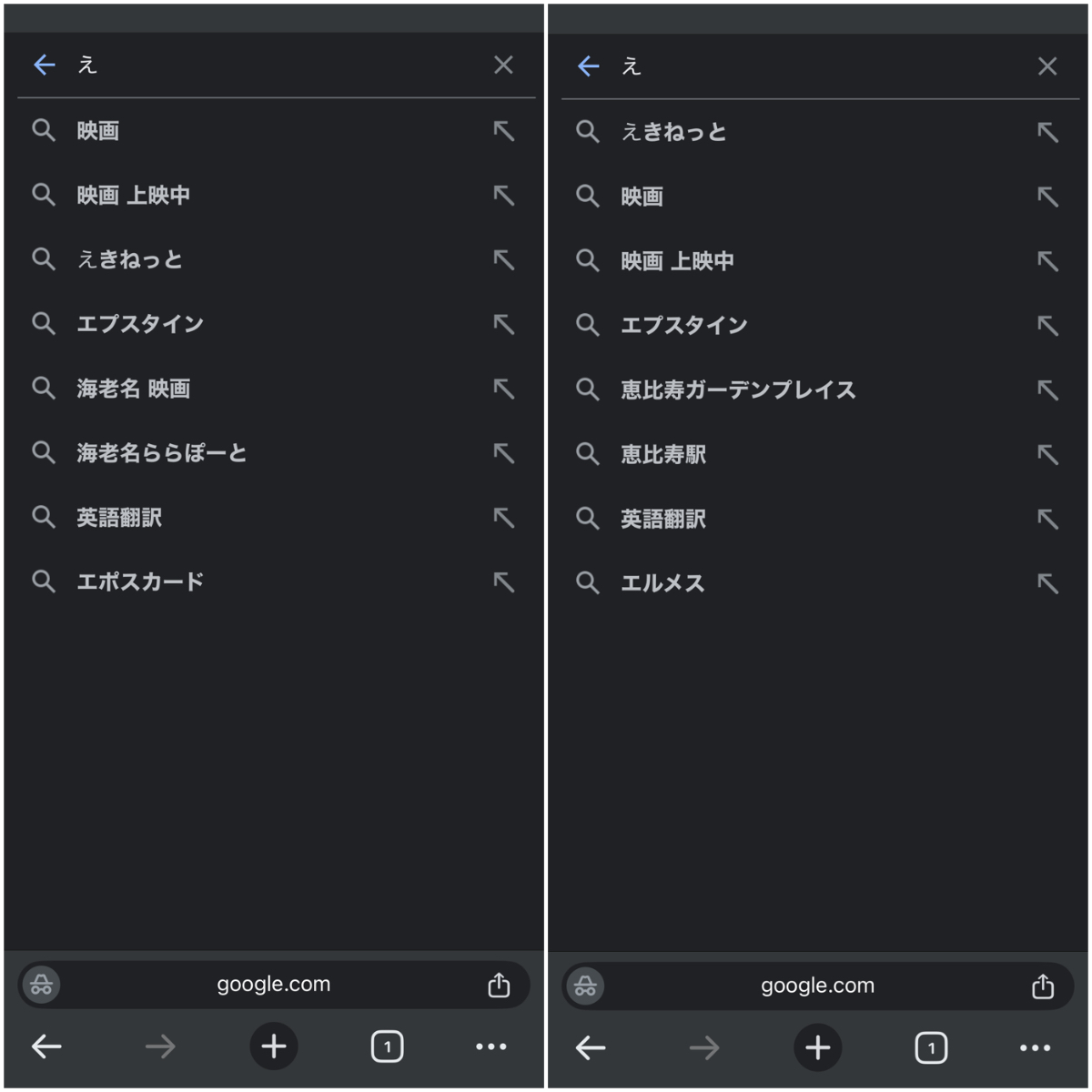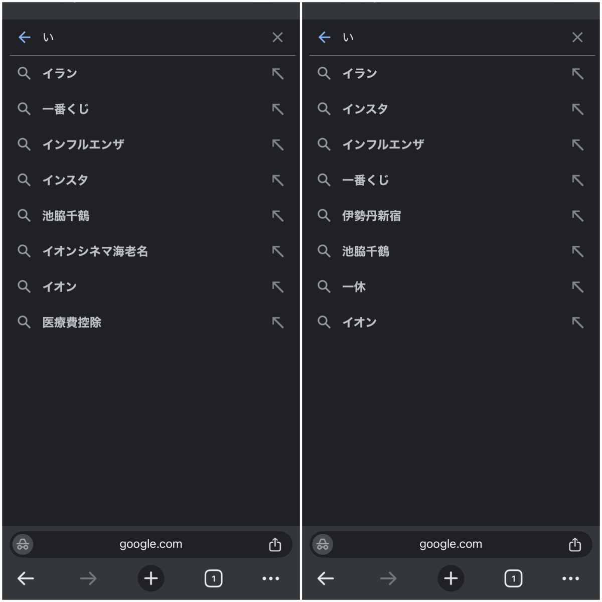 左が神奈川県横浜市旭区のサジェスト、右が東京(渋谷区)。
